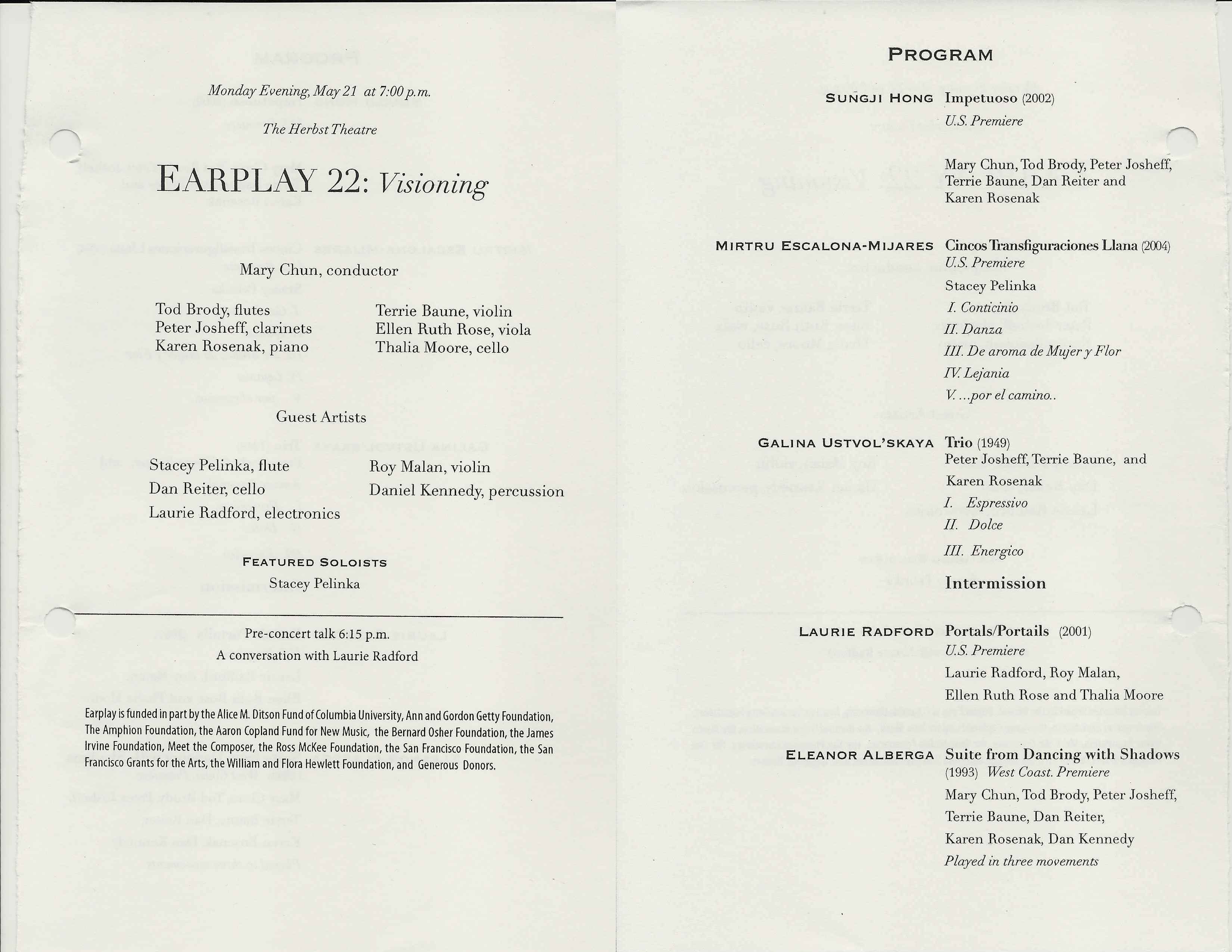 05/21/07 @ 19:00 Chamber Earplay Mary Chun, conductor Herbst San Francisco Program Hong: Impetuoso
