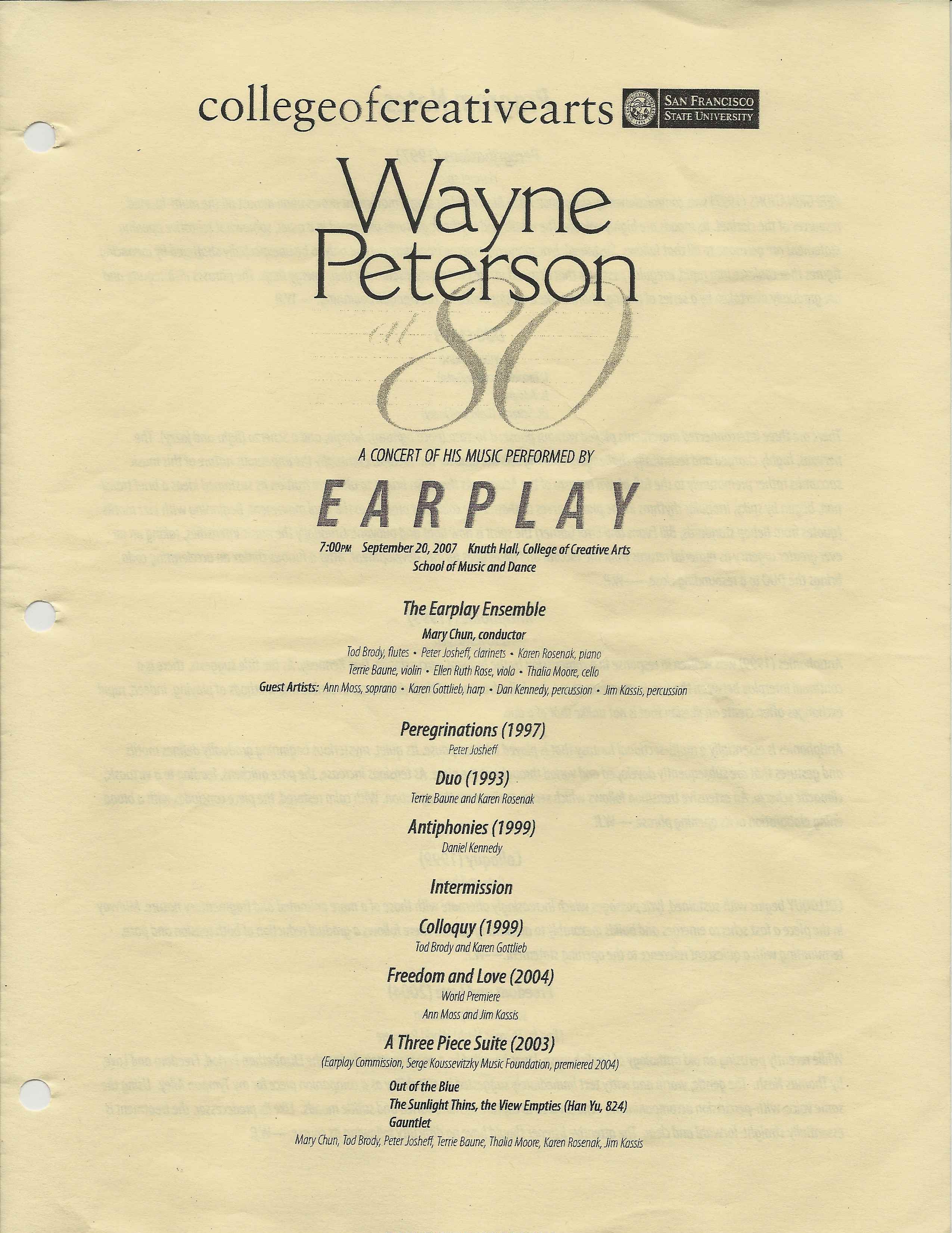 09/20/07 @ 19:00 Chamber Wayne Peterson 80th Earplay Knuth San Francisco Program