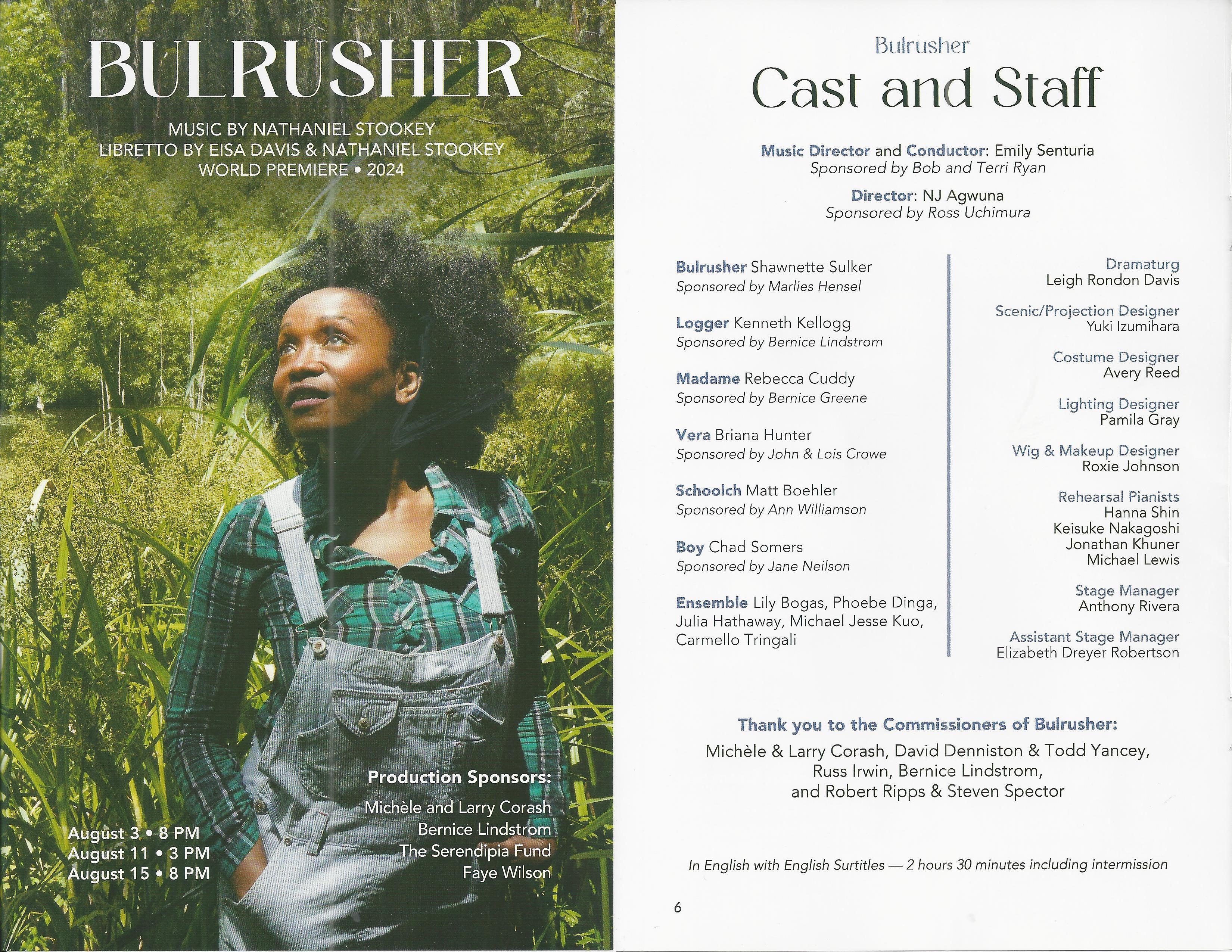 | 08/11/24 @ 15:00 | Opera | Bulrusher | West Edge Opera | Scottish Rite | Oakland | Program | Stookey: Bulrusher | |||