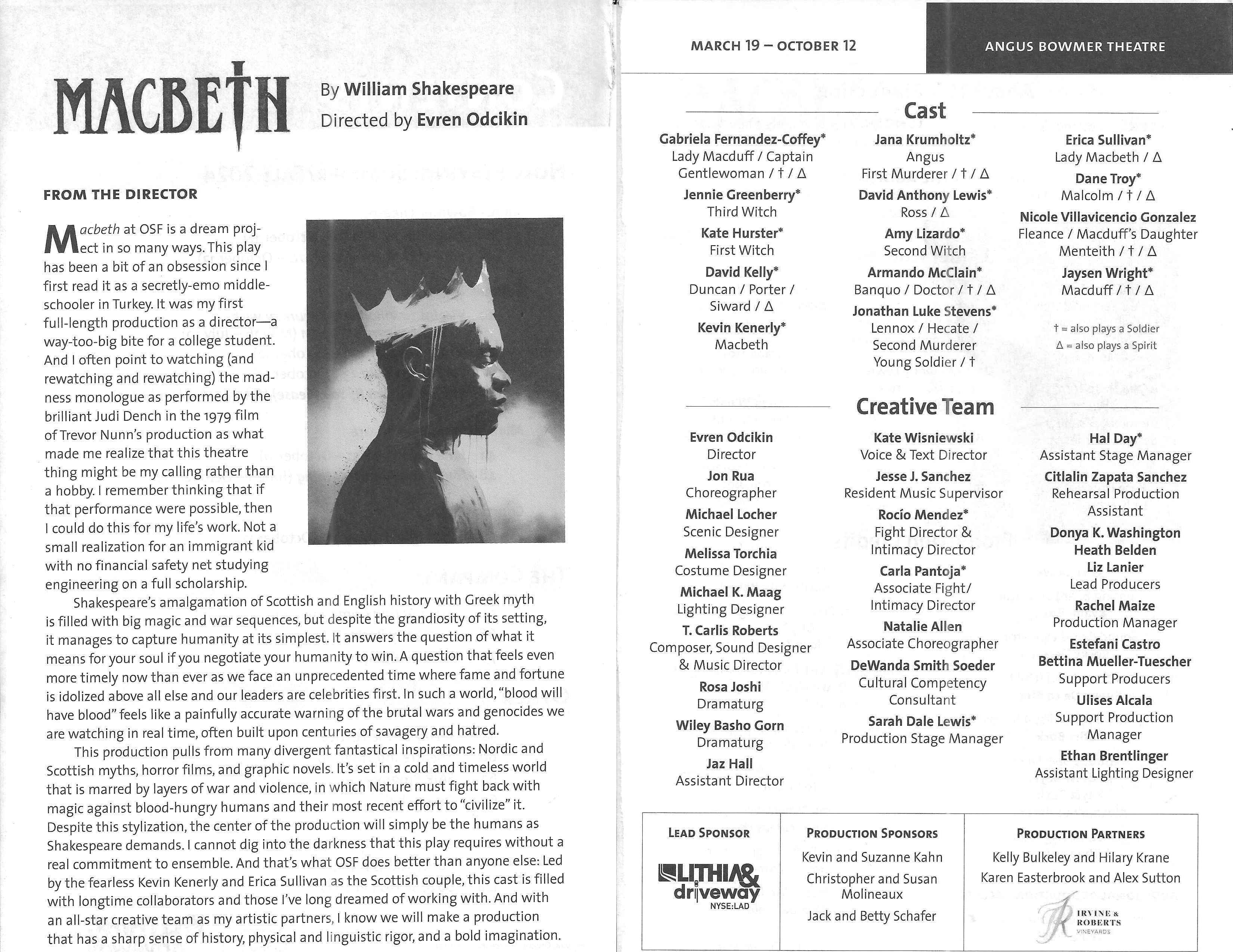 | 09/04/24 @ 20:00 | Theater | Macbeth | Oregon Shakespeare Festival | Bowmer | Ashland OR | Program | Shakespeare: Macbeth | |||