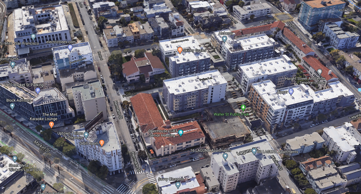 Two of the Teacher's College buildings (Richardson Hall and Woods Hall) remain in 2020, now joined by dense new housing surrounding Waller Park, an urban minipark consisting largely of uninviting concrete stairs and stone walls. In stark contrast, the lovely turreted Victorian at 80/82 Waller (clearly visible in most of the 1906 photos above) now sports a delightful paint job, and its neighbors down Waller remain largely unchanged.