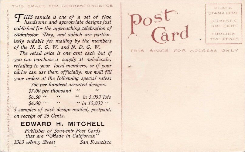 for the Admission Day 1910 Festival of September 1910,